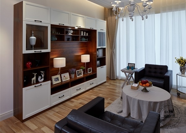 胡桃木簡(jiǎn)歐兩室兩廳全屋定制家具效果圖之客廳