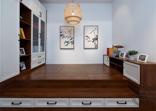胡桃木簡(jiǎn)歐兩室兩廳全屋定制家具效果圖之榻榻米