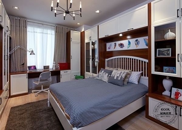 胡桃木簡(jiǎn)歐兩室兩廳全屋定制家具效果圖之臥室
