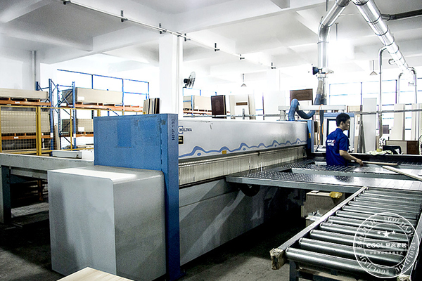 易高家居生產設備引進德國先進的豪邁品牌,昂貴的設備實現了柔性化生產,車間職工們正在井井有條的忙碌,包括電子開料鋸在內的德國豪邁生產設備,使得材料的規格得到定型,然后經過專業的流水線到達封邊設備進行封邊操作。在生產車間內,職工的身影并不是很多,大多都是1-2個人左右在操作一臺大型設備,可見現在的自動化生產設備對職工的需求并不是那么大了。