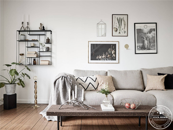 北歐空間中的窗簾地毯等軟裝搭配上,多是選擇的色調清淺的布藝或是柔軟的紗麻布品。客廳空間中的沙發可選用淺淡色彩的布藝沙發,能夠給人以潔凈的清爽之感。北歐風格中的家具多是選用的典型現代瑞典家具,其與室內不宜的裝飾物搭配以對稱和諧為主,能夠展現出居家舒適的氣氛。