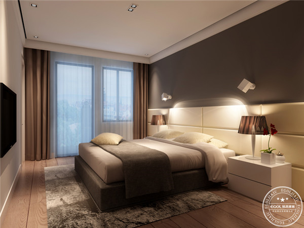 床頭背景墻上鋪貼壁紙、壁布,其他墻面刷上淺色系的墻漆,搭配現(xiàn)代風的軟裝,布置出一個簡潔大方的臥室空間。高級灰的設計也是很適合用在現(xiàn)代風臥室內的,以灰色和白色為主的臥室空間,搭配一些黑色的家具,可以營造一種輕松、舒適的感覺。
