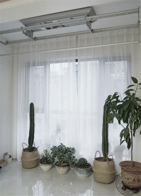 安裝電動晾衣架,慵懶的標配;擺放幾盆花卉盆栽、裝點詩意閑適陽臺;陽光曬暖、閑坐喝杯小酒、聽著音樂、安靜至極。給自然閑適生活,來點儀式感。