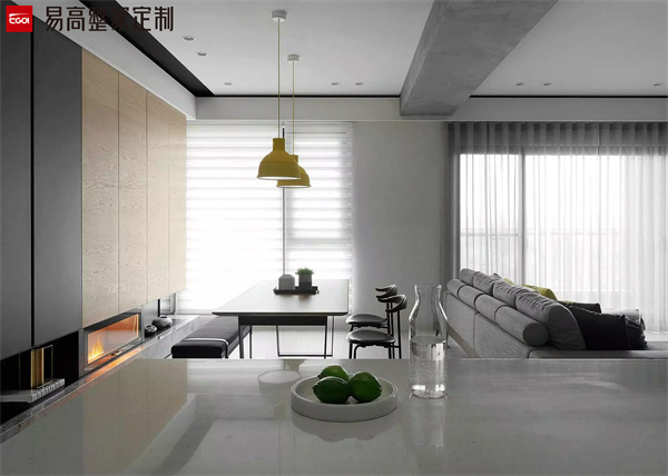對(duì)于小戶型來說,空間的布局設(shè)計(jì)很影響視覺效果。如果客廳和餐廳進(jìn)行隔斷,空間變分成幾個(gè)布局明顯的幾個(gè)板塊,整個(gè)空間的通透性以及采光效果都會(huì)比較差,而且視覺上隔斷會(huì)給人一種非常擁擠的感覺。可以考慮將客廳和餐廳打通,不進(jìn)行隔斷,廚房也采用開放式設(shè)計(jì),動(dòng)線設(shè)計(jì)合理,每個(gè)區(qū)域都進(jìn)行空間一體化設(shè)計(jì),整個(gè)空間的采光以及通透性都會(huì)變得更好,一體化的布局設(shè)計(jì)在視覺上也會(huì)更加和諧統(tǒng)一。
