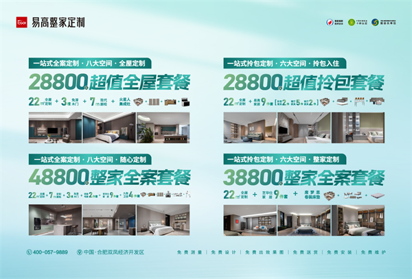 易高整家定制為消費(fèi)者提供一體化整家設(shè)計(jì)、一體化產(chǎn)品交付、一站式售后服務(wù),滿(mǎn)足多樣化需求。基于此,易高推出多種裝修套餐,以滿(mǎn)足不同預(yù)算的客戶(hù)。