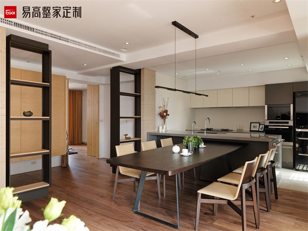 現在的生活條件越來越好了,對于家裝的要求也越來越高了。因此家里也添置了不少的廚房電器和家具。現在廚房里的大大小小電器不少,為了讓廚房的收納更加整潔合理,除了需要合理規劃廚櫥柜的布局設計之外,餐廚一體化設計可以有效的利用空間,將電器都規劃設計成嵌入式設計,合理有效地收納這些家電,并且還可以定制收納柜儲物,讓餐廚一體化設計可以實用又美觀。