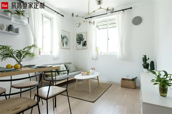 小客廳可以選擇不要電視柜,電視柜比較大會占用一部分的空間。看起來也會讓室內顯得比較擁擠。想要看電視的話,可以選擇安裝投影儀,看起來視覺效果也更加簡潔寬敞,還能增加觀影的娛樂性。空間小,家裝顏色搭配要選擇比較清新簡約的色系比較好,比如奶油色系、原木、白色以及奶咖等等,給人一種清爽大氣簡約的感覺,不會有壓迫感。