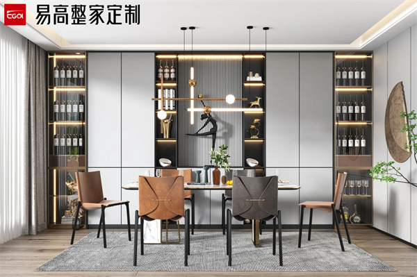 家庭裝修中,酒柜往往是一個彰顯品味與格調的關鍵元素。它不僅僅是一個存放美酒的地方,更是家居裝飾的一道亮麗風景線。那么全屋定制酒柜該如何選擇?首先在柜門的選擇上,強烈推薦玻璃柜門。相比于無柜門的酒格,玻璃柜門有著很多優勢。無柜門的酒格雖然拿取方便些,但很容易積灰,玻璃門的通透感能讓整個酒柜看起來更加輕盈、時尚,為家居空間增添一份靈動之美。    中間操作臺的背板顏色也是一個容易被忽視的要點。很多人可能會選擇留白墻,覺得這樣簡單省事。一定要做同色背板,這樣能夠讓酒柜整體更加和諧統一,同時將周圍環境更好地融合在一起營造出一種整體感。    封邊的顏色選擇也至關重要,雙色封邊會讓酒柜看起來拼湊感很強,缺乏整體感。而同色封邊能夠讓酒柜的每一個部分都緊密相連,從柜體到柜門,從正面到側面,都呈現出一種渾然一體的美感。    頂部懸空的酒柜設計會讓酒柜看起來不夠完整,而且還容易積灰。一門到頂的設計能夠最大限度地利用空間,讓酒柜看起來更加大氣、壯觀。這種設計給人一種頂天立地的感覺,彰顯出酒柜的豪邁與大氣。    在拉手的選擇上,免拉手設計是當下的時尚潮流。明拉手不僅會破壞酒柜的整體簡潔性,而且在使用過程中還可能會不小心刮到衣物或者身體。免拉手設計則通過巧妙的柜門結構,實現了無拉手的開合,既方便又美觀。    以上就是關于全屋定制酒柜該如何選擇?在設計酒柜時,我們不僅要考慮到美觀性,還要考慮到實用性和舒適性。通過以上的設計要點,我們可以打造出一個既實用又美觀的酒柜。