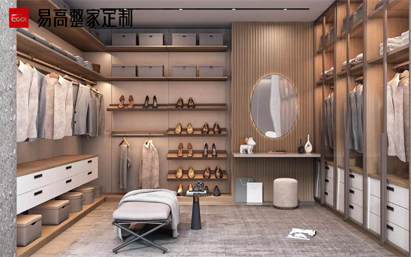 衣帽間的功能分區要根據衣物種類和數量來設計。常見的分區包括掛衣區、疊放區、鞋帽區和配飾區。掛衣區用于懸掛大衣、外套等,高度要根據衣物長度設計;疊放區用于疊放毛衣、褲子等,可設計抽屜或隔板;鞋帽區用于收納鞋子、帽子等,可設計鞋架或帽架;配飾區用于收納首飾、領帶等小件物品,可設計抽屜或掛鉤。