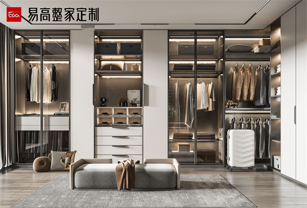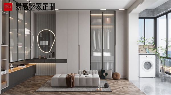 衣帽間的材質選擇要注重環保性和耐用性。板材應選擇環保等級高的ENF級或E0級板材;五金配件要選擇質量好的滑軌、鉸鏈等,確保使用壽命;玻璃可選擇透明或磨砂玻璃,增加空間通透感。