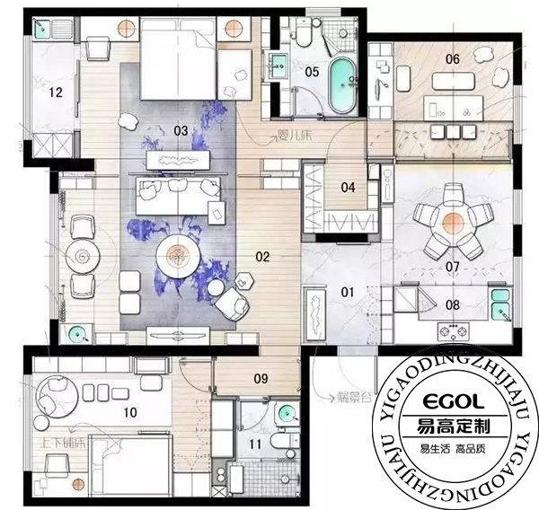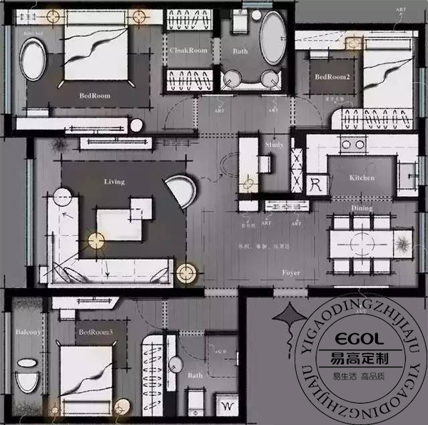 定位為私宅,家庭成員:夫妻+2個女兒(大女兒5歲,小女兒1歲),兩位老人偶爾來住,有書房功能。