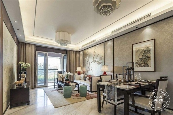 新中式軟裝有陶瓷、字畫、絲綢、陶藝、布藝等等,一般以山水、自然風景、古典圖文為主要內容。為了避免風格過于沉悶,如今中式也雜糅了不少現代元素軟裝。