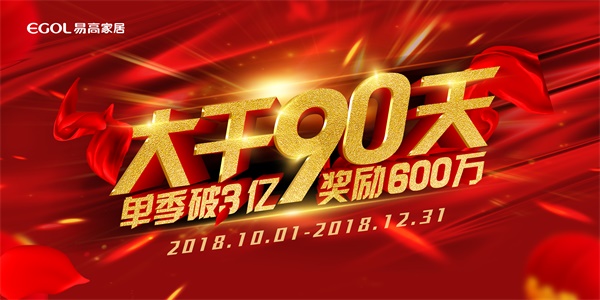 “大干90天”,絕不是一句空談的口號(hào)!2018年的四分之三已經(jīng)過去了,四季度我們將努力拼搏,用行動(dòng)來踐行,為年終沖刺,決勝2018,創(chuàng)造屬于易高家居的新紀(jì)錄。