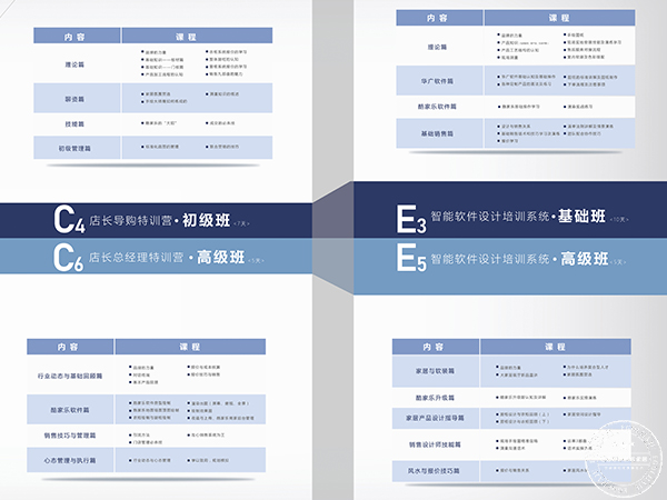 針對總經理、店長、導購、設計師等各層級學員的培養需求,目前商學院正在籌備啟動設計師基礎班、設計師高級班、導購店長初級班、店長總經理高級班等4種類型的培訓,從基礎知識到經營戰略提供全方位的指導,并將不斷完善設計師、導購店長及總經理等培訓體系的授課流程,以實現設計與銷售的有效融合,把更多更好的理念和實戰技能傳達給每位學員,為市場培養一專多能復合型人才,提升終端盈利能力。